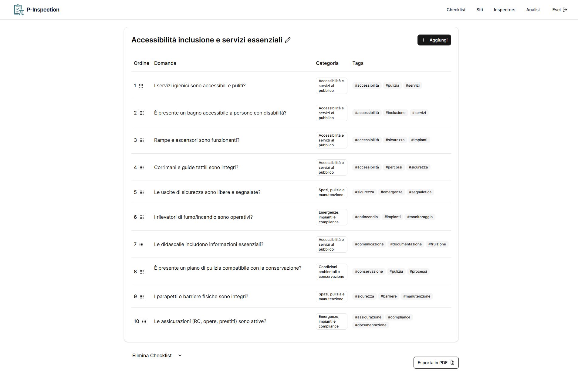 π InspectionLa piattaforma digitale che trasforma i controlli periodici in flussi di dati strutturati, con checklist configurabili e app mobile offline-first.